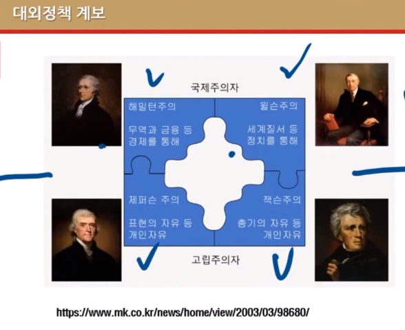 -해밀턴주의,윌슨주의,잭슨주의,제퍼슨주의