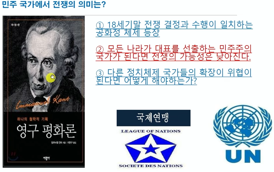 전세계가 민주화 된다면 전쟁이 일어나지 않을 것이다.