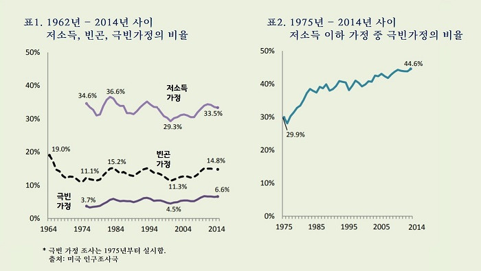 미국 인구조사국에 따르면 50여년 전 당시 미국 대통령 린든 존슨이 ‘빈곤과의 전쟁’을 선언한 후에도 미국의 빈곤율은 크게 변하지 않았다.